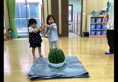 スイカ割を楽しんだ後は、切っておやつでいただきました♪