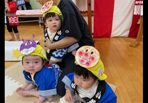 たくさんのお客さんを前にしてびっくりしていましたが、お家の方を見つけて「おーい」手を振ったり!笑顔いっぱいの太鼓まつりになりました。