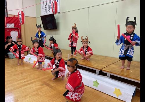かき組は、クラスで大流行のクワガタになりきって、クワガタ音頭を踊りました。