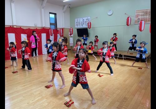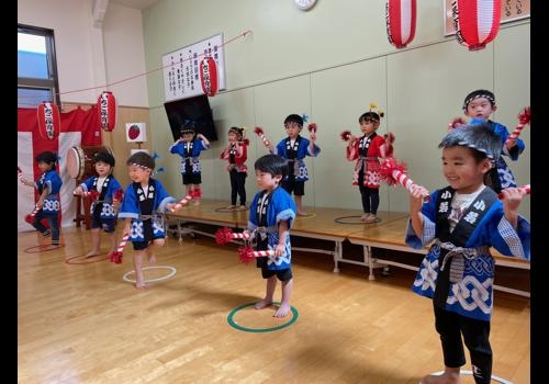 手作りのバチを持って、かっこよく踊ったひめりんご組の完全~お祭りモード。